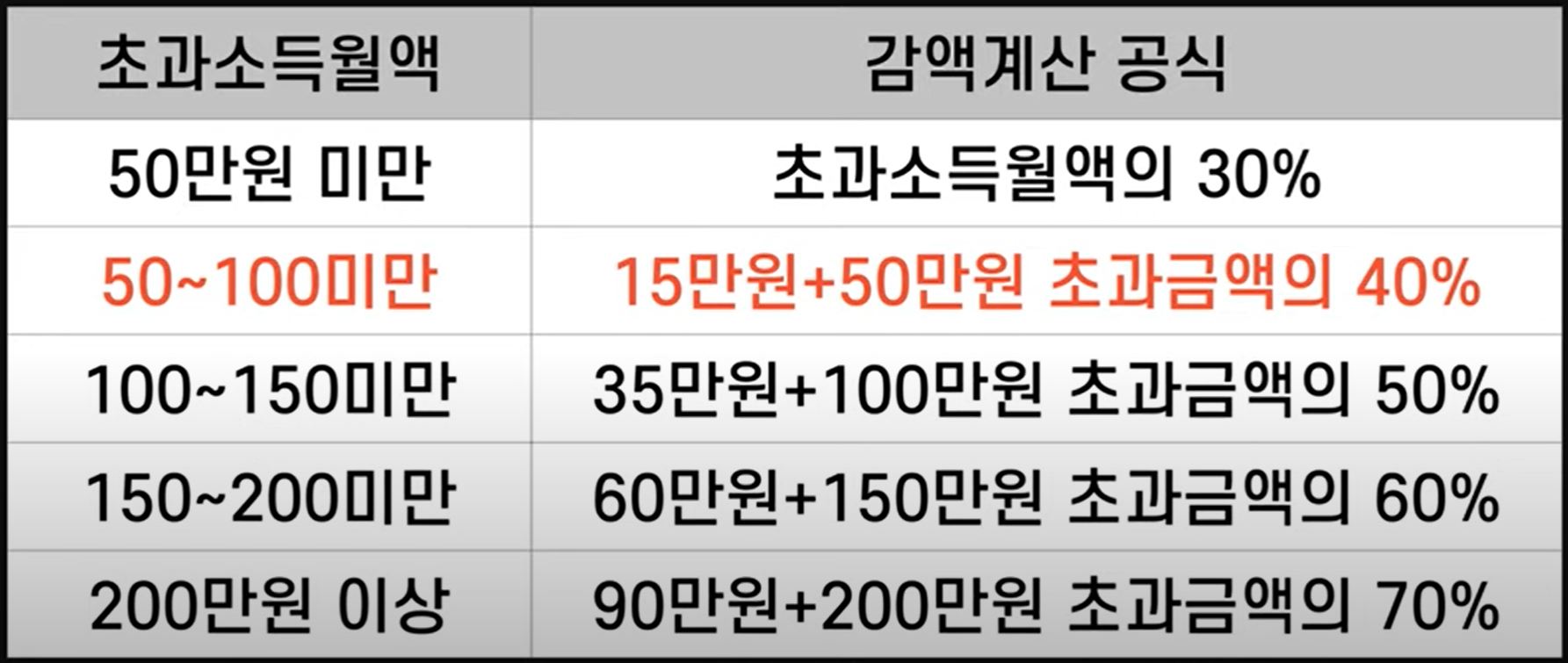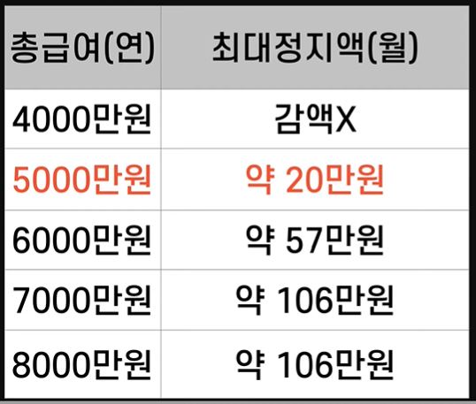 5천만 원이면 약 20만 원, 7천만 원이면 월 106만 원입니다. 그런데 최대 50%까지만 감액합니다. 즉 연금을 월 200만 원 받는다면 총급여가 7천만 원이 넘더라도 최대 50%까지 감액하니까 100만 원만 감액합니다.